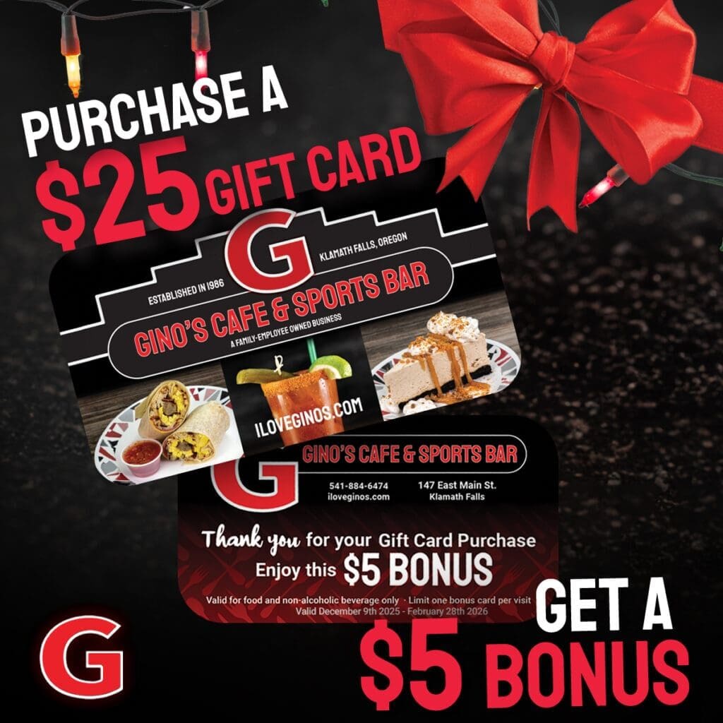 Purchase a $25 Gift Card and Get a $5 Bonus at Gino’s!